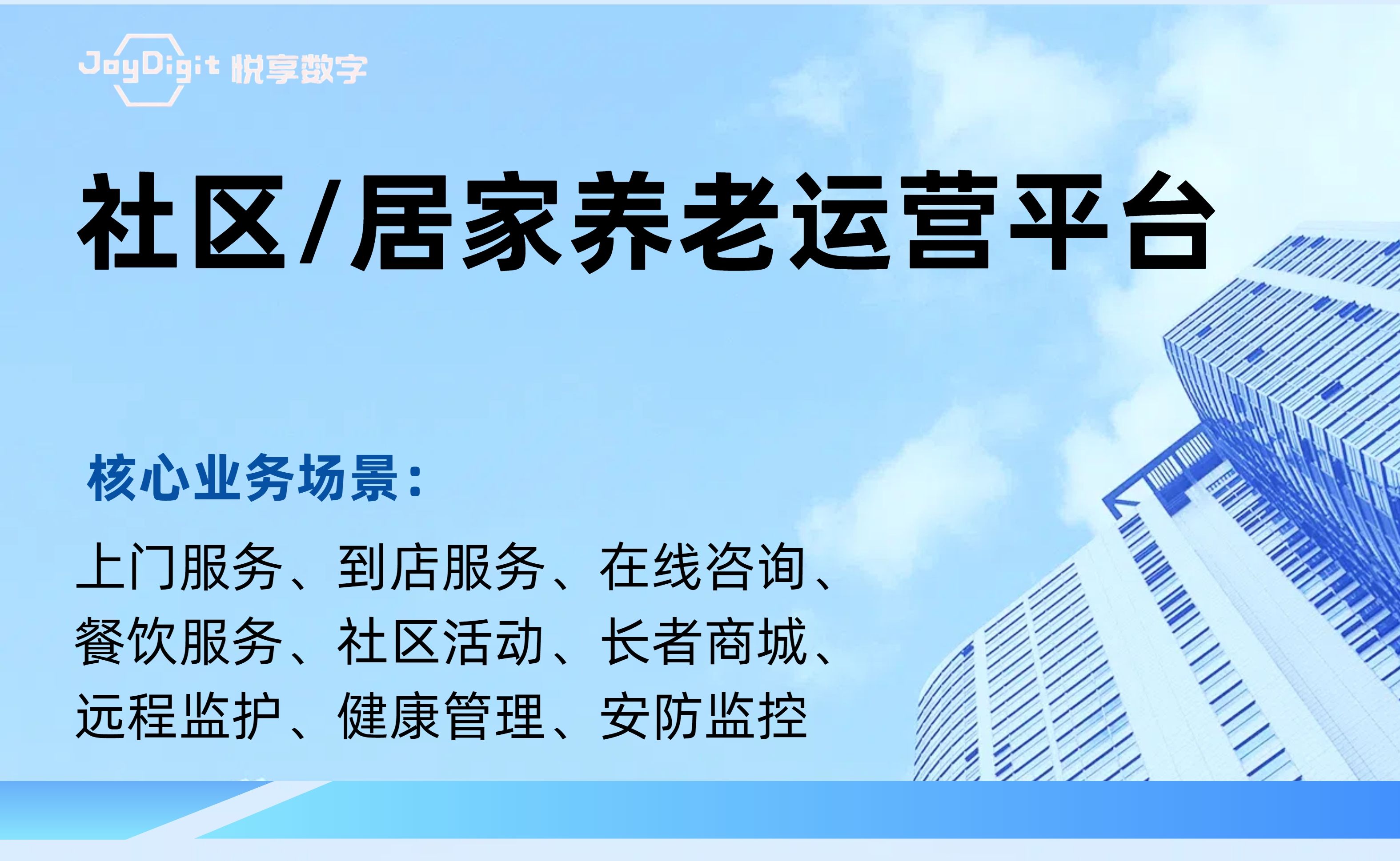 北京悅享數(shù)字科技有限公司(JoyDigit?,簡稱悅享數(shù)字?)作為養(yǎng)老行業(yè)數(shù)字化轉(zhuǎn)型的引領(lǐng)者,以“數(shù)字驅(qū)動健康?,智慧賦能養(yǎng)老?”為愿景,以iSpeed作為養(yǎng)老行業(yè)數(shù)字化轉(zhuǎn)型的標準,通過融合大數(shù)據(jù)、人工智能、物聯(lián)網(wǎng)、區(qū)塊鏈和移動互聯(lián)等創(chuàng)新技術(shù),打造了領(lǐng)先的數(shù)字化養(yǎng)老解決方案-悅享養(yǎng)老數(shù)字化平臺(JoyDigit NexSight Platform),端到端覆蓋了數(shù)字化渠道與銷售、業(yè)務(wù)流程標準化與智...